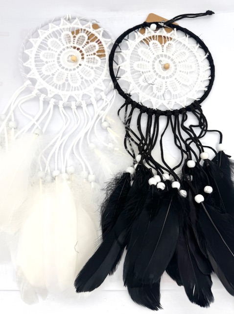 Großhandel – 15 cm Weißer & Schwarzer Gehäkelt Traumfänger mit Federn
