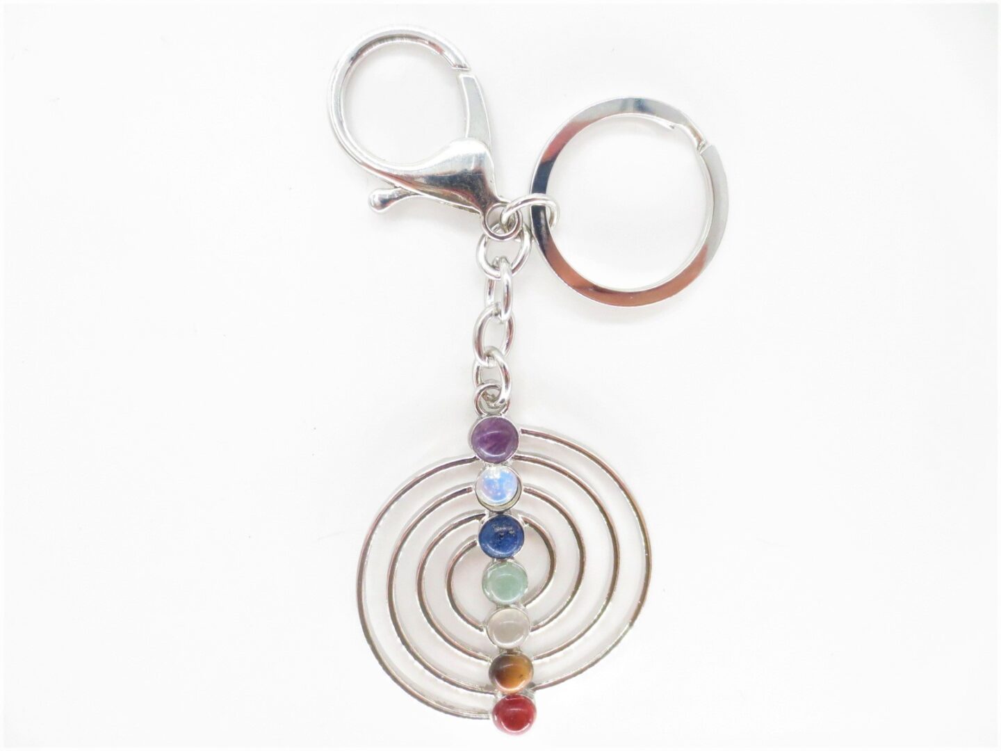 Home » Shop » Geschenke und Glückskatzen » Schlüsselanhänger » Glücklich Schlüsselanhänger » Großhandel Metall Chakra Spiral Schlüsselanhänger mit 7 Edelsteinen