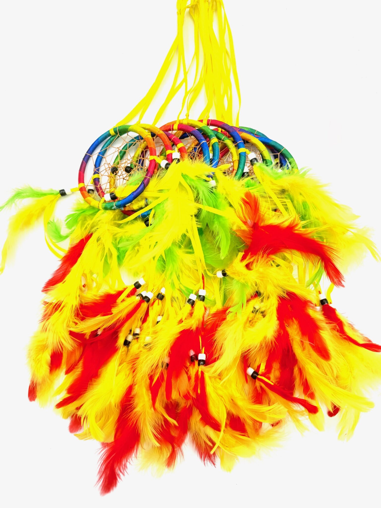 Leicht und einfach aufzuhängen, eignen sich diese Mini-Traumfänger ideal für Schlafzimmer, Kinderzimmer, Festivaldekoration, Geschenkartikel oder Boho-inspirierte Wohnräume. Die lebendigen Farben und fließenden Federn sorgen für einen auffälligen und dekorativen Akzent.