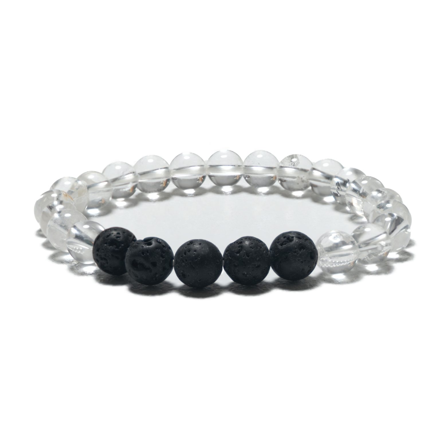 Großhandel – 8-mm-Armband ohne Geschenkbox – Bergkristall und Lavastein
