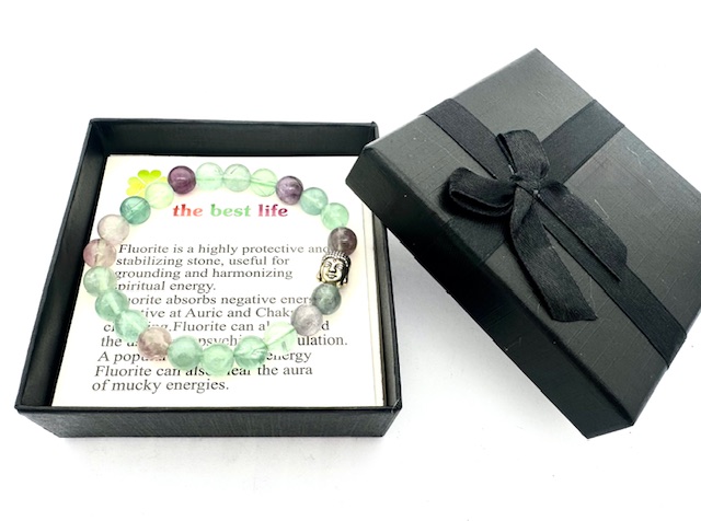 Buddha Fluorit Armband – Geschenkbox Inklusive