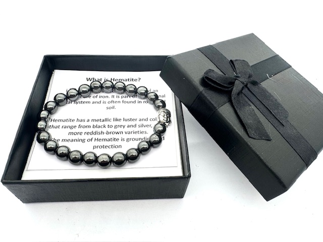 Buddha Hämatit Armband – Geschenkbox Inklusive