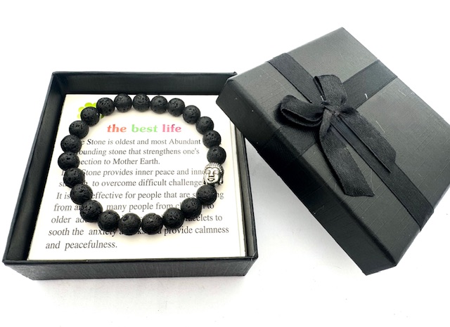 Buddha Lavastein Armband – Geschenkbox Inklusive
