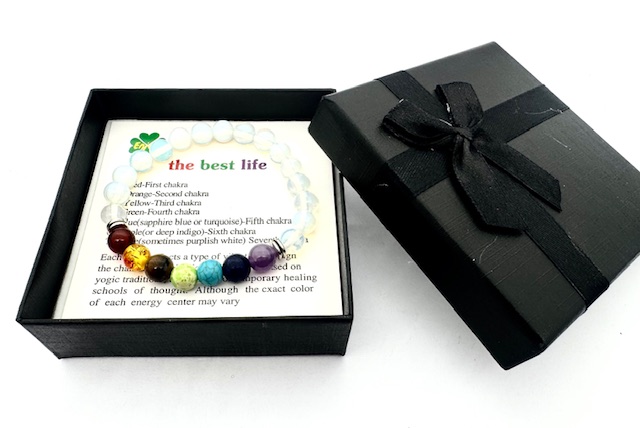 Großhandel – 7-Chakra Opal Edelsteinarmband – Geschenkbox inklusive