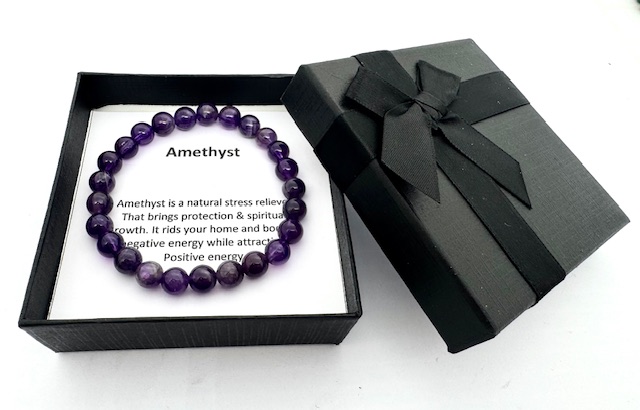 Großhandel – 8 mm Amethyst Edelsteinarmband – Geschenkbox Inklusiv