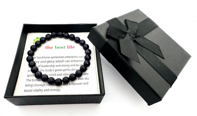 Großhandel – 8 mm Blauer Sandstein Edelsteinarmband – Geschenkbox Inklusiv