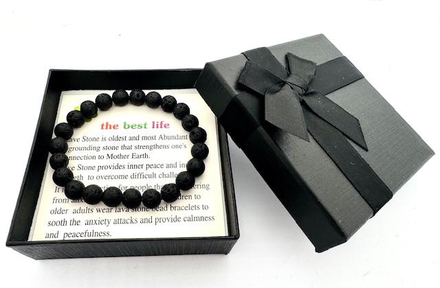Großhandel – 8 mm Lavastein Edelsteinarmband – Geschenkbox Inklusiv