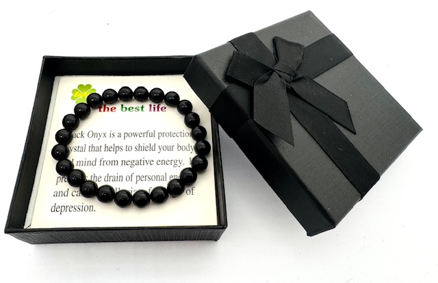 Großhandel – 8 mm Schwarz Onyx Edelsteinarmband – Geschenkbox Inklusiv