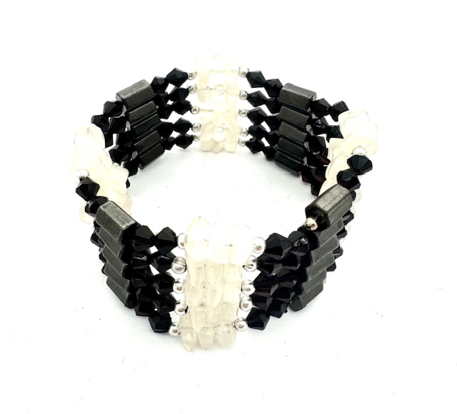 Großhandel – Bergkristall Magnetisches Wickelarmband mit Schwarz Perlen