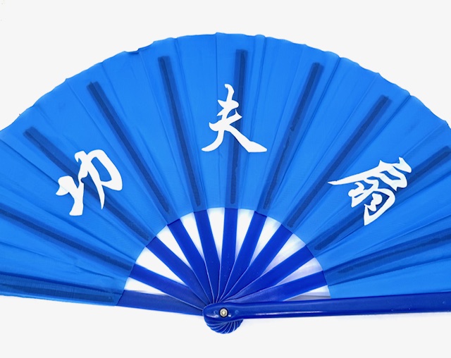 Großhandel – Blauer Faltfächer – Martial-Arts-Schriftzeichen-Design (Kunststoffstreben)