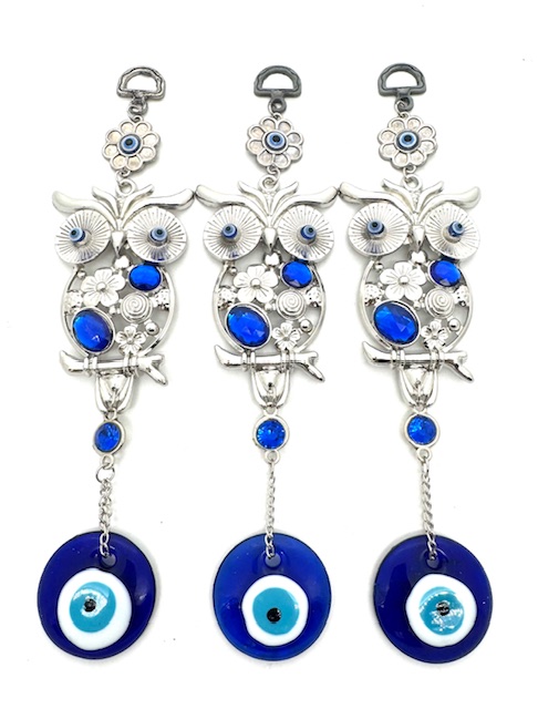 Großhandel – Blauer Anhänger mit Eule und bösem Blick, 3er-Set