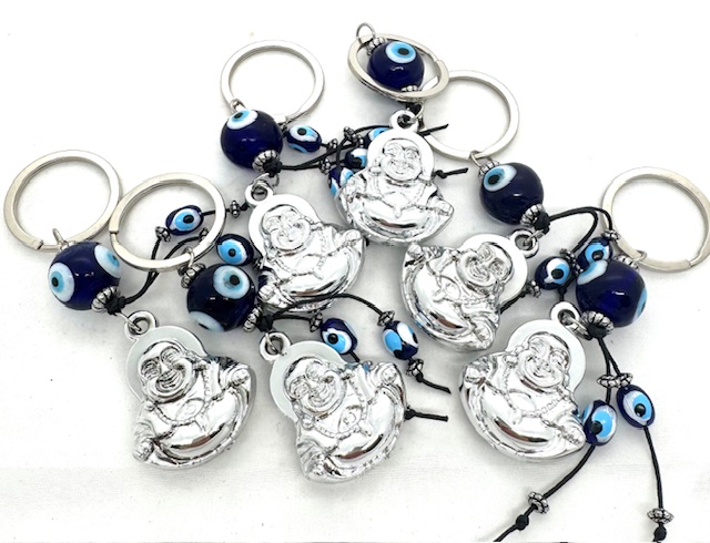 Großhandel – Blauer Böser Blick-Schlüsselanhänger mit Buddha II, 6er-Set