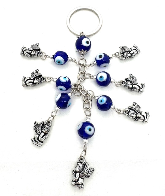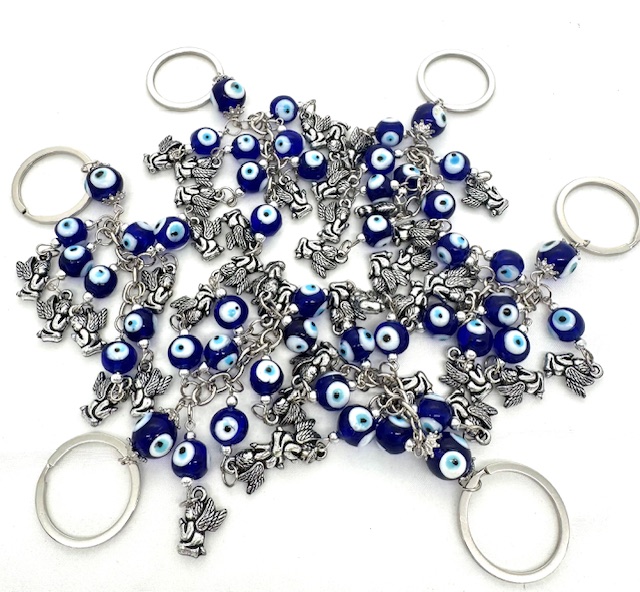 Großhandel – Blauer Schlüsselanhänger mit Engeln und bösem Blick, 6er-Set