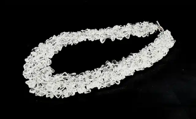 Erweitern Sie Ihr Großhandelsangebot mit dieser geclusterte Bergkristall Chipstein Halskette – einem auffälligen und natürlichen Schmuckstück, das in jeder Schmuckkollektion hervorsticht. Die Halskette besteht aus dicht gruppierten bergkristall Chips, die einen vollen, strukturierten Look erzeugen und ideal für Kunden sind, die auffällige Edelsteinschmuckstücke suchen. Bergkristall ist bekannt für seine beruhigende Energie und wird mit Wohlstand in Verbindung gebracht, was es zu einer beliebten Wahl sowohl für spirituell orientierte als auch modebewusste Käufer macht. Das clusterartige Design verleiht Volumen und Einzigartigkeit, ideal zum Schichten oder solo tragen. Perfekt für esoterische Läden, Boutiquen oder den Online-Wiederverkauf. Bestellen Sie zu wettbewerbsfähigen Großhandelspreisen und bieten Sie Ihren Kunden hochwertige, auffällige Halsketten, die natürliche Schönheit ausstrahlen.