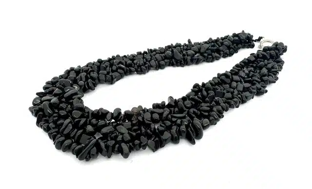 Erweitern Sie Ihr Großhandelsangebot mit dieser geclusterte Schwarz Onyx Chipstein Halskette – einem auffälligen und natürlichen Schmuckstück, das in jeder Schmuckkollektion hervorsticht. Die Halskette besteht aus dicht gruppierten schwarz onyx Chips, die einen vollen, strukturierten Look erzeugen und ideal für Kunden sind, die auffällige Edelsteinschmuckstücke suchen. Schwarz onyx ist bekannt für seine beruhigende Energie und wird mit Wohlstand in Verbindung gebracht, was es zu einer beliebten Wahl sowohl für spirituell orientierte als auch modebewusste Käufer macht. Das clusterartige Design verleiht Volumen und Einzigartigkeit, ideal zum Schichten oder solo tragen. Perfekt für esoterische Läden, Boutiquen oder den Online-Wiederverkauf. Bestellen Sie zu wettbewerbsfähigen Großhandelspreisen und bieten Sie Ihren Kunden hochwertige, auffällige Halsketten, die natürliche Schönheit ausstrahlen.