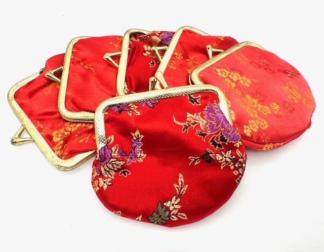 Die kleine, strukturierte Form eignet sich ideal zur Aufbewahrung von Münzen, Schlüsseln oder anderen kleinen persönlichen Gegenständen. Der Metallrahmen sorgt für sicheren Halt, während die leuchtend rote Farbe mit goldenen Akzenten der Börse ein traditionelles und geschenktaugliches Aussehen verleiht – häufig verbunden mit Symbolik für Glück und Wohlstand.