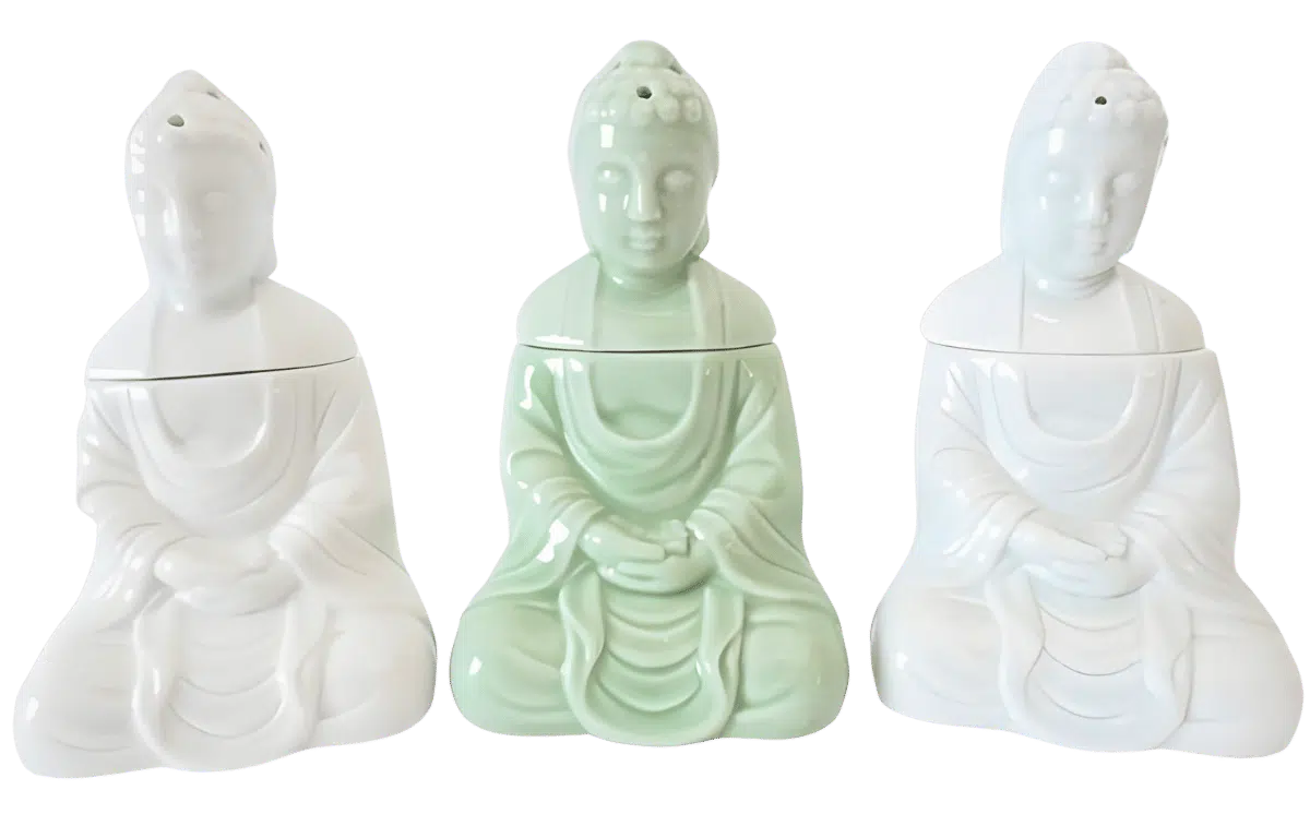 Buddha Duftlampe Luxus-Set mit 3 Stück – Jade, Hellblau & Weiß