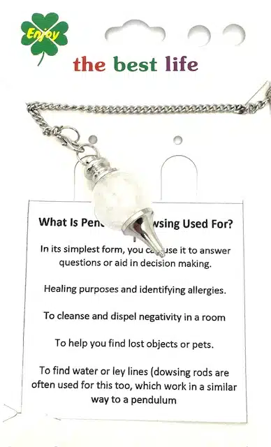 Die glatte, polierte Bergkristall-Kugel schwingt mühelos an einer stabilen Metallkette und ermöglicht es Ihnen, Ihre Intuition anzuzapfen und Achtsamkeit während Meditation oder Wahrsagepraktiken zu vertiefen. Ob Sie neu im Pendelgebrauch sind oder ein erfahrener Anwender – dieses vielseitige Pendel unterstützt spirituelles Wachstum und Energieausgleich.