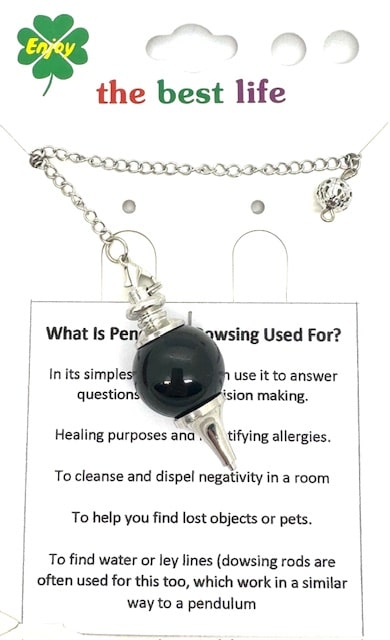 Die glatte, polierte Schwarz Onyx-Kugel schwingt mühelos an einer stabilen Metallkette und ermöglicht es Ihnen, Ihre Intuition anzuzapfen und Achtsamkeit während Meditation oder Wahrsagepraktiken zu vertiefen. Ob Sie neu im Pendelgebrauch sind oder ein erfahrener Anwender – dieses vielseitige Pendel unterstützt spirituelles Wachstum und Energieausgleich.