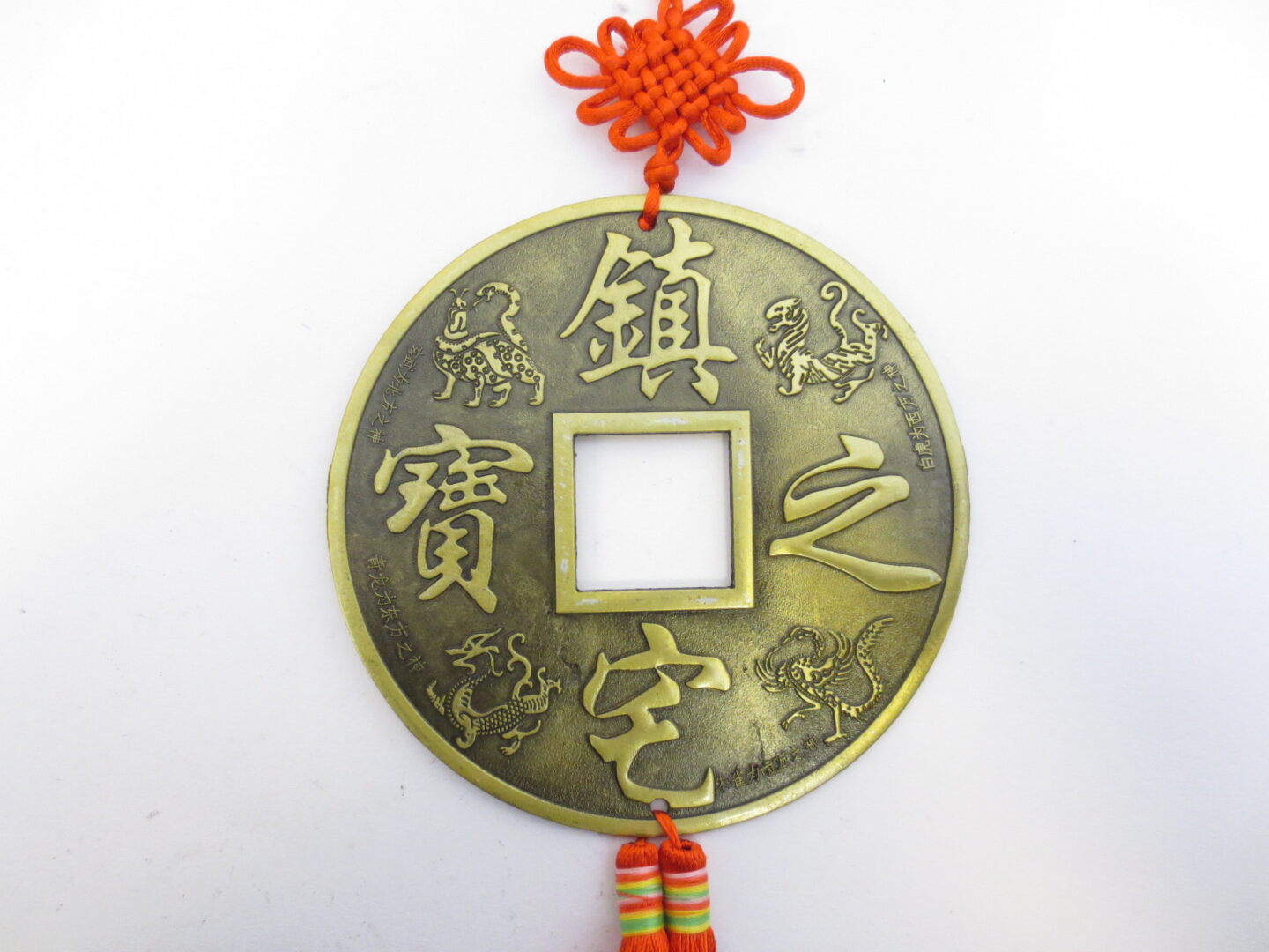Großhandel – Feng-Shui-Münze zum Wandbehang mit Drache und Phönix und roter Quaste, AA-Qualität