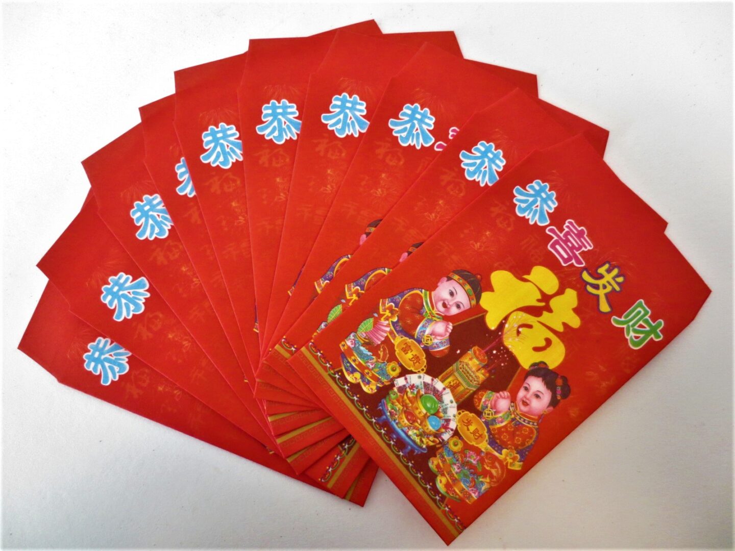 Ein roter Umschlag oder “Hong Bao” ist ein Geldgeschenk, das in China oft gegeben wird. Der Name kommt von dem roten Umschlag in dem das Geld ist. Im Kantonesischen wird er “Lai Si” genannt. Die roten Päckchen werden oft bei sozialen Angelegenheiten gegeben, wie bei einer Hochzeit, bei den Ferien aber auch zum chinesischen Neujahr. Die Farbe rot symbolisiert viel Glück und der Geldbetrag der sich im Umschlag befindet ist oft eine Glücksnummer. Chinesische rote Papier-Glückstütchen (100 Stück)  Â