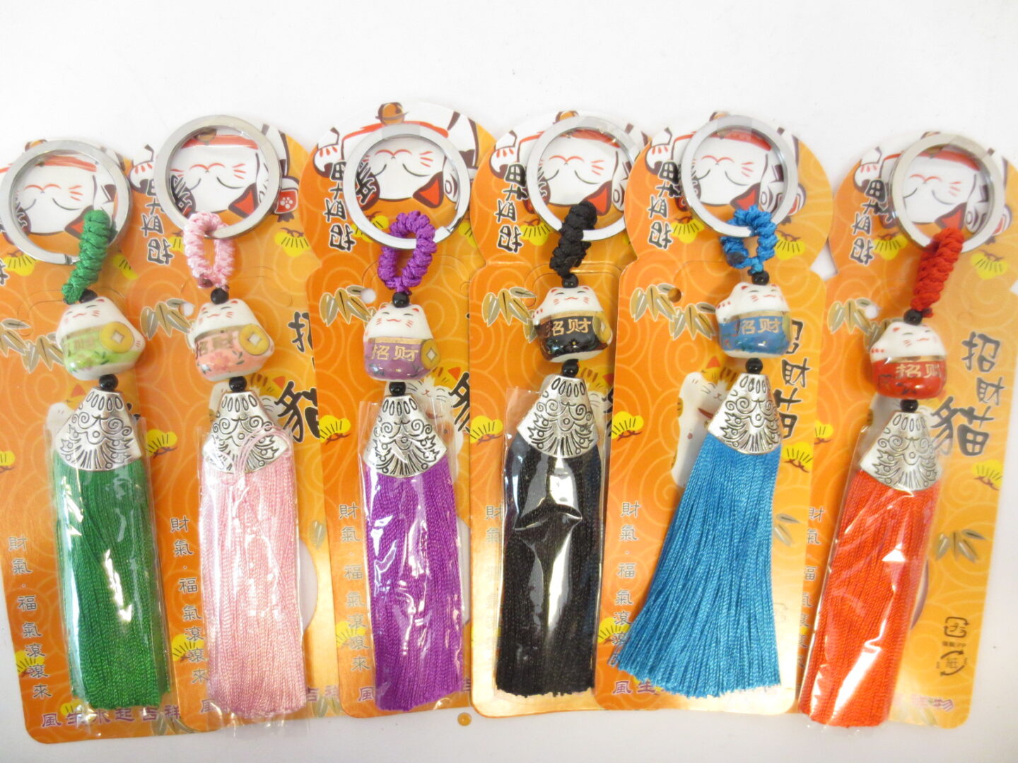Großhandel – Glücksbringer-Schlüsselanhänger Maneki Neko (verschiedene Farben) – Japanischer Feng-Shui-Anhänger (6 Stück)