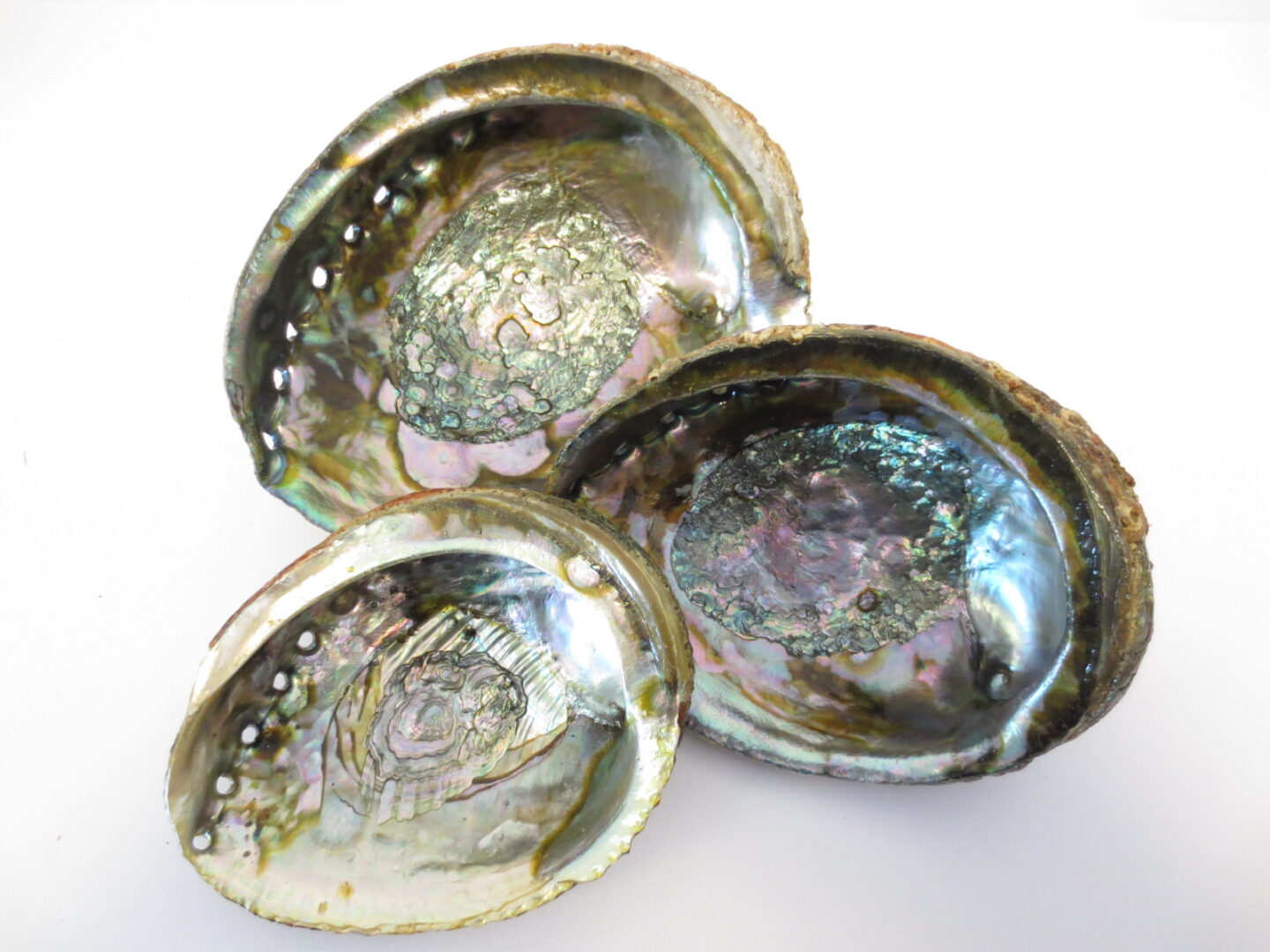 Abalone-Muschel-Set mit 3 Stück: Mittel (13 – 14 cm), Groß (14 – 15 cm) und Supergroß (15 – 17 cm)