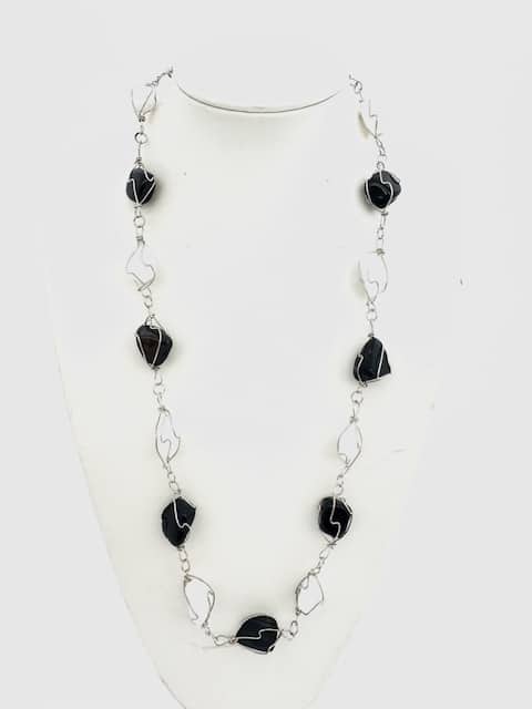Großhandel Poliertes Edelstein-Ketten Drahtgewickelt – Onyx & Milky Quartz