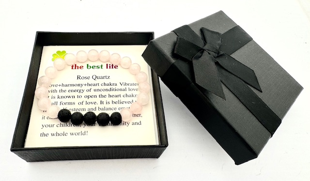 Großhandel – 8 mm Rosenquarz und Lavastein Edelsteinarmband – Geschenkbox Inklusiv