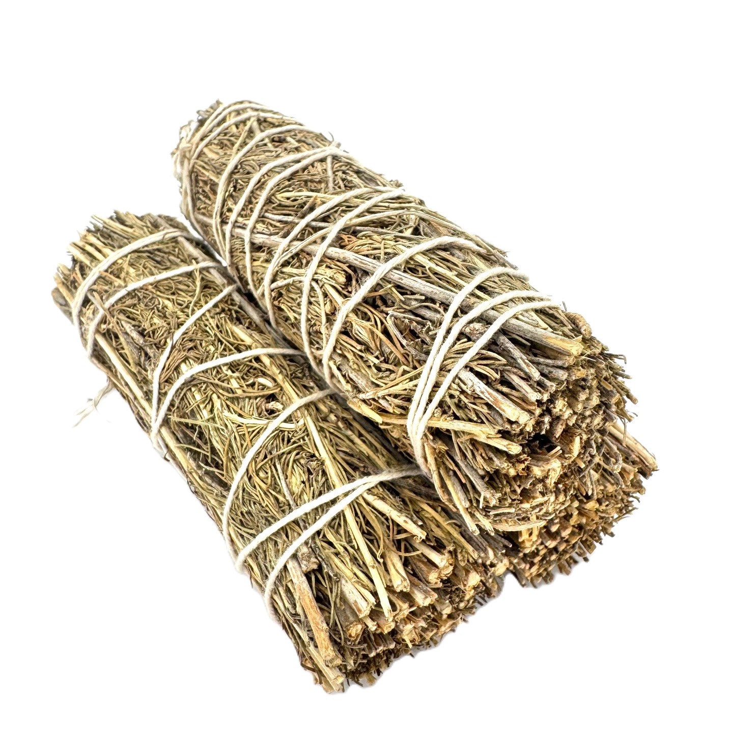 Wüstensalbei Dieser aromatische Strauch gedeiht in den windigen Wüsten der Gegend von Santa Fe/Taos. Er hat schlanke, verzweigte Blätter und eine hellbraune Farbe. Wüstensalbei hat ein warmes, würziges Aroma, das ein wenig pfeffrig ist (denken Sie an Lorbeerblätter oder Minztee). Er wird zur Reinigung und Klärung, zum Schutz und zur inneren Stärkung verwendet. Er soll angenehme Gedanken hervorrufen und Kopfschmerzen und Angst lindern.