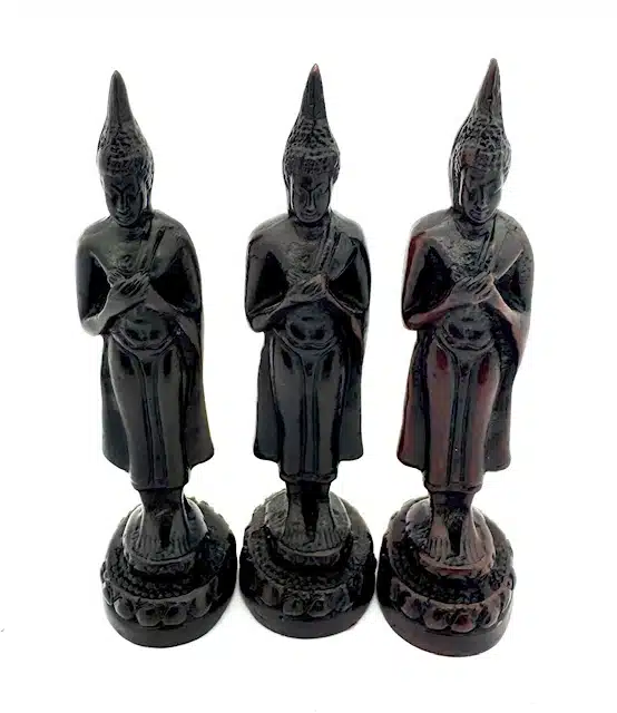Diese elegante thailändische Freitag-Buddha-Statue zeigt die traditionelle Pang-Ramphueng-Haltung, auch bekannt als die Kontemplationshaltung. In der thailändisch-buddhistischen Tradition symbolisiert dieser stehende Buddha tiefe Reflexion, innere Ruhe und spirituelles Bewusstsein.