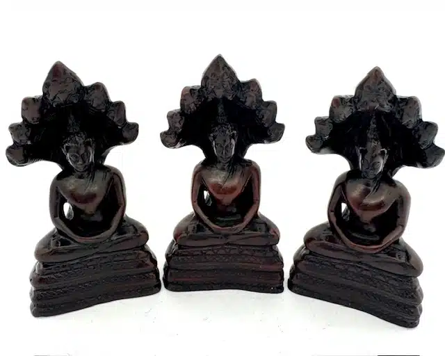 Großhandel – Thailändische Samstag-Buddha-Statue – Pang Nak Prok (Vom Naga beschützt) – Schwarze Dekorationsfigur