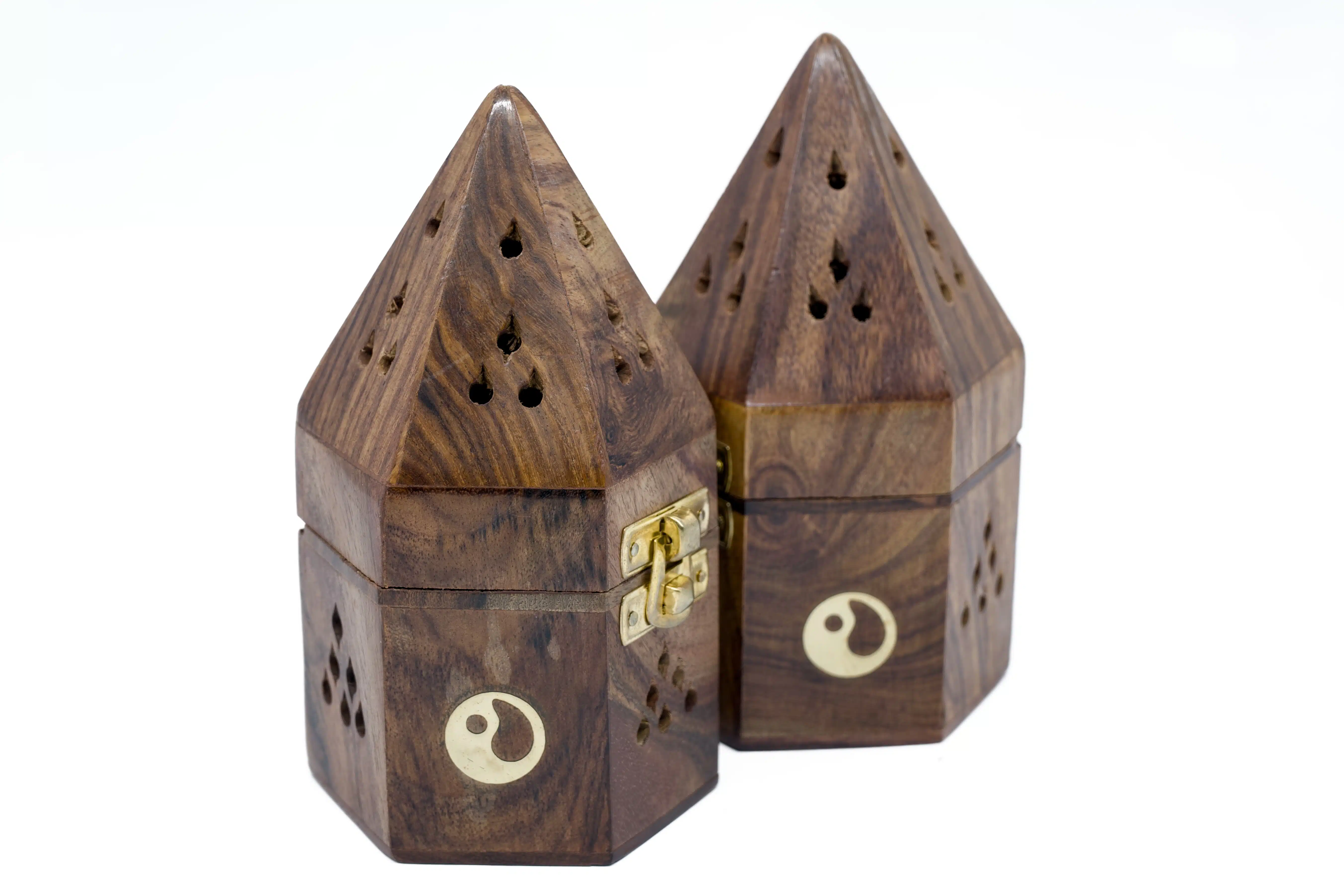 Großhandel – Hölzerner Yin Yang ☯ Pyramiden Kegel Brenner (2 Stück)
