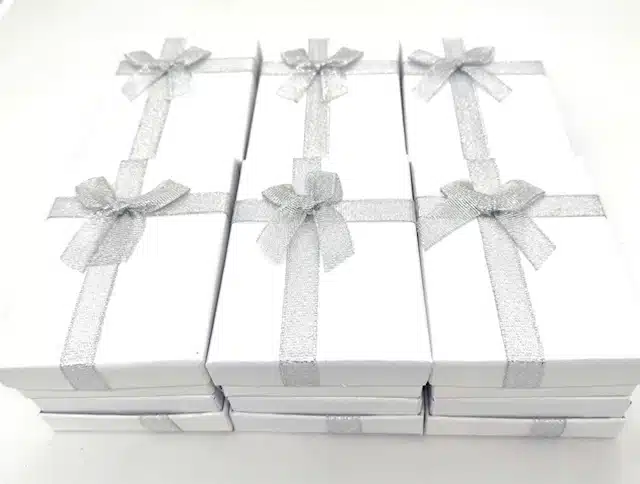 Luxuriöse und wunderschöne Geschenkbox in Weiß für Armbänder, Halsketten und Ohrringe.