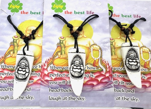 Großhandel – Weiße Lachender Buddha Zahn Anhänger Halskette