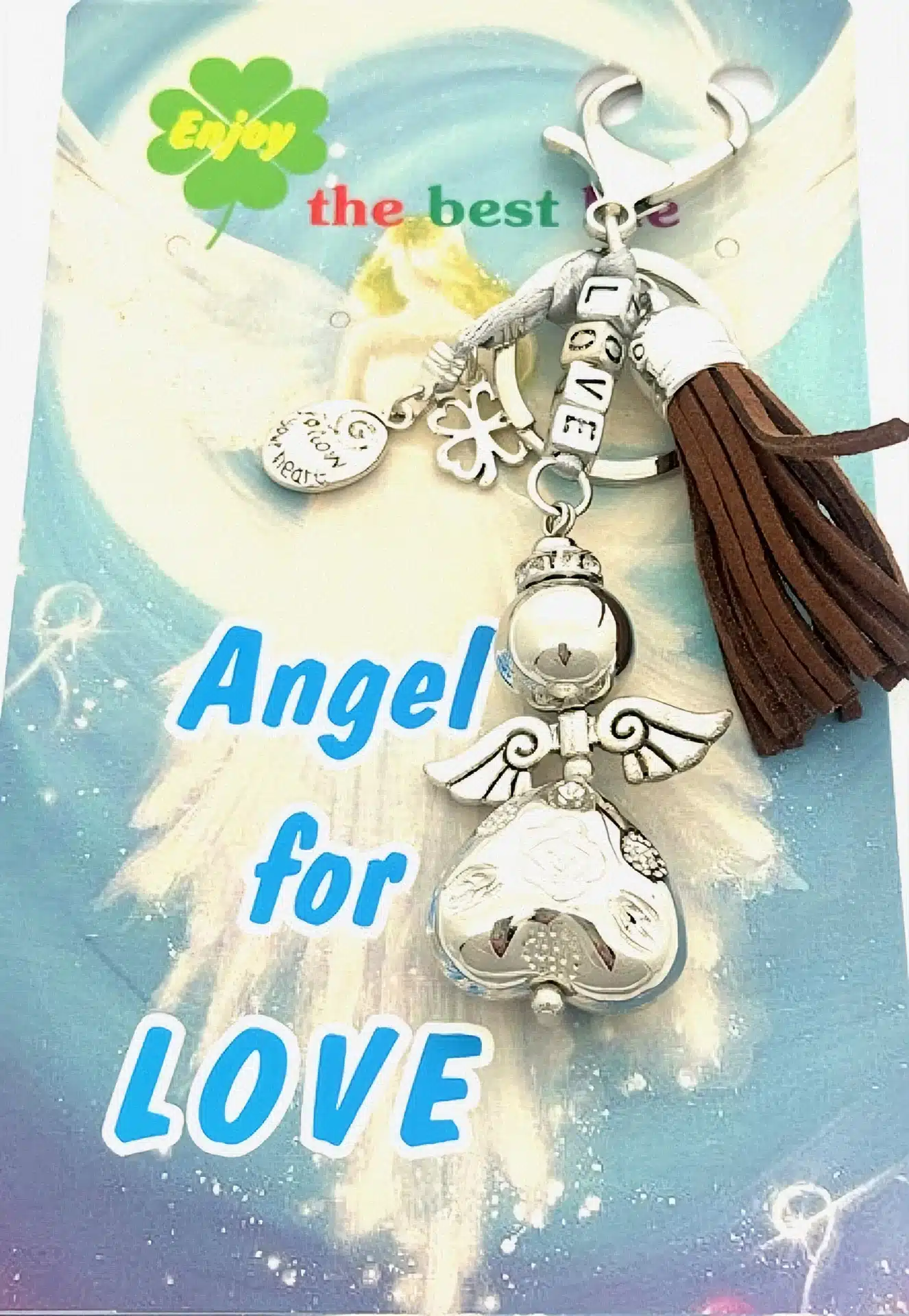 Großhandel – Dunkelbraun “LOVE” Angel Schlüsselanhänger mit Quaste, Kleeblatt und Lebensbaum Anhänger
