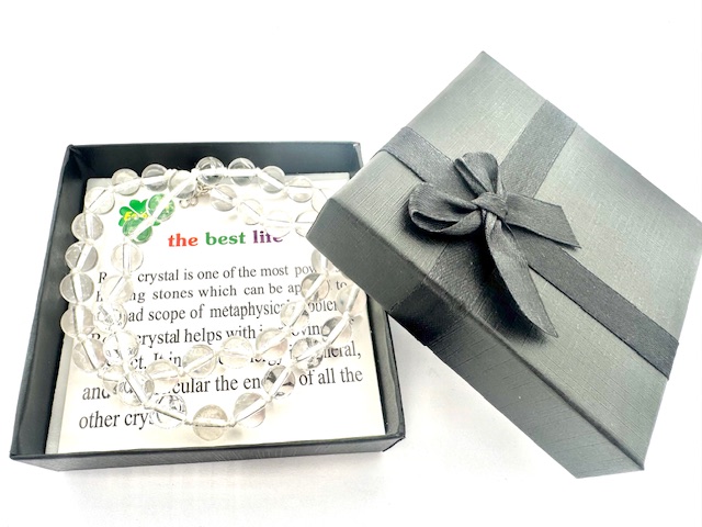 Großhandel – 8 mm Bergkristall-Perlenkette (mit Schachtel)