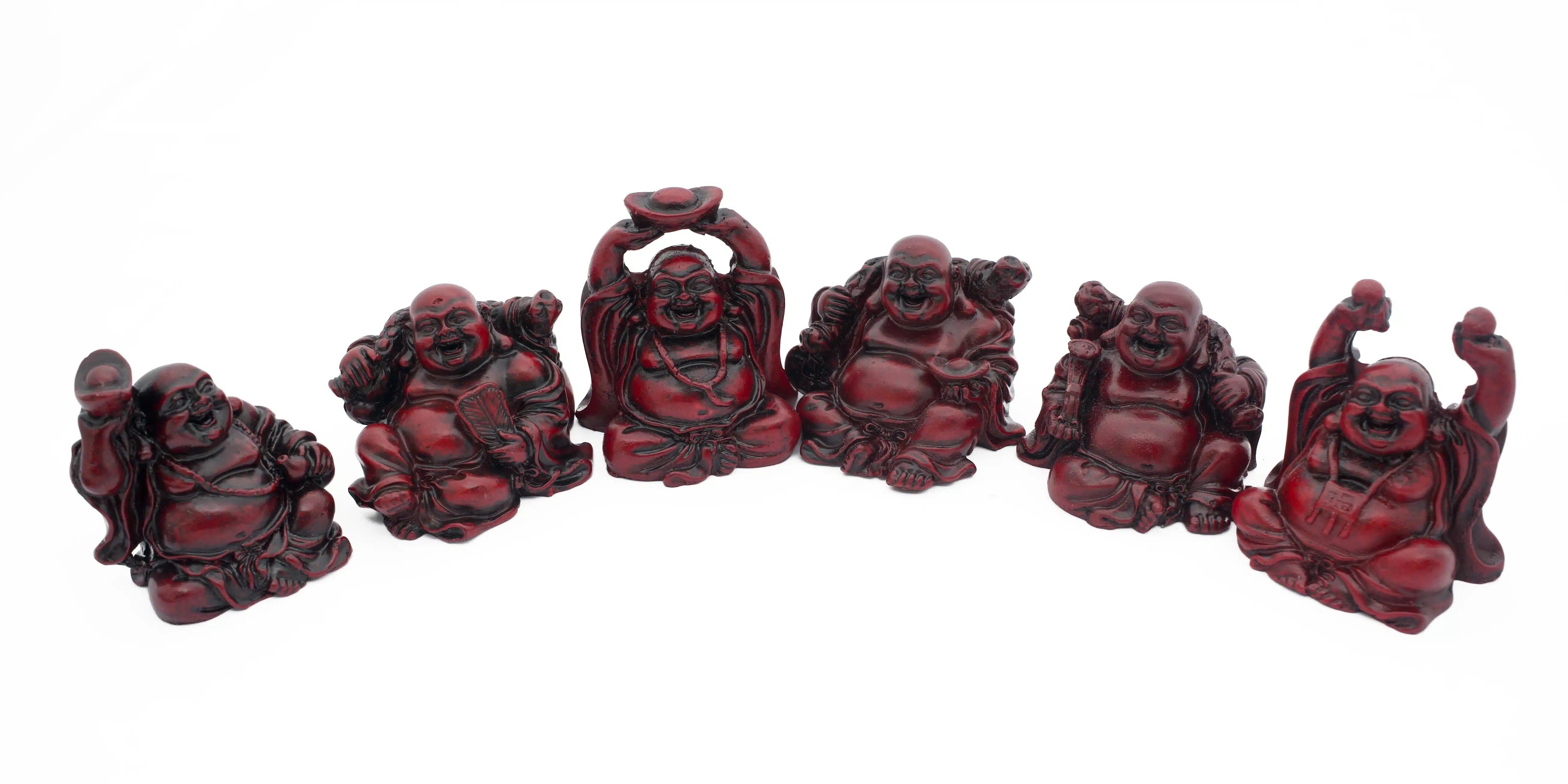 Großhandel – Set aus 6 Lachender Buddha Figuren – Wohlstand & Glück Kollektion