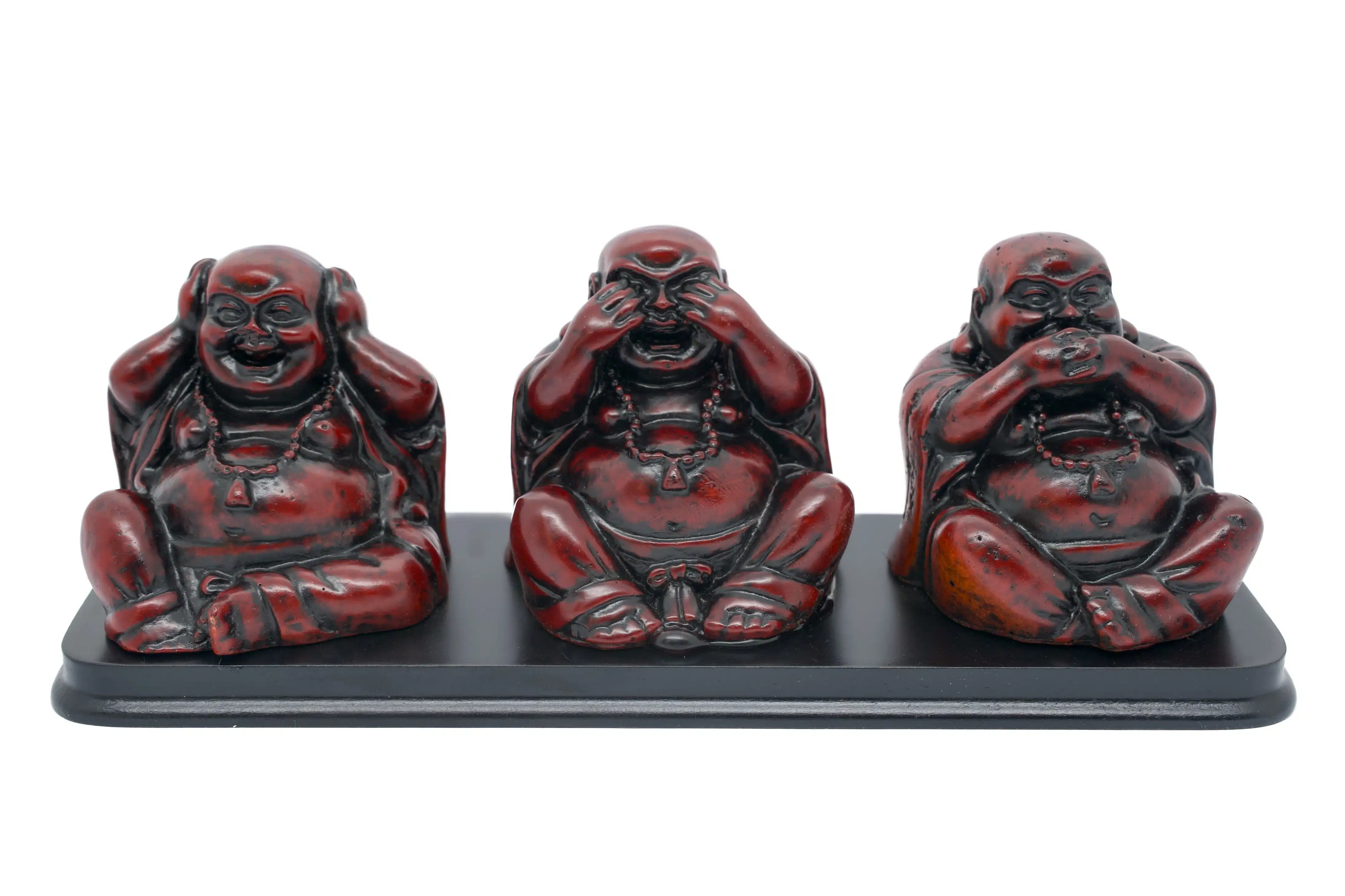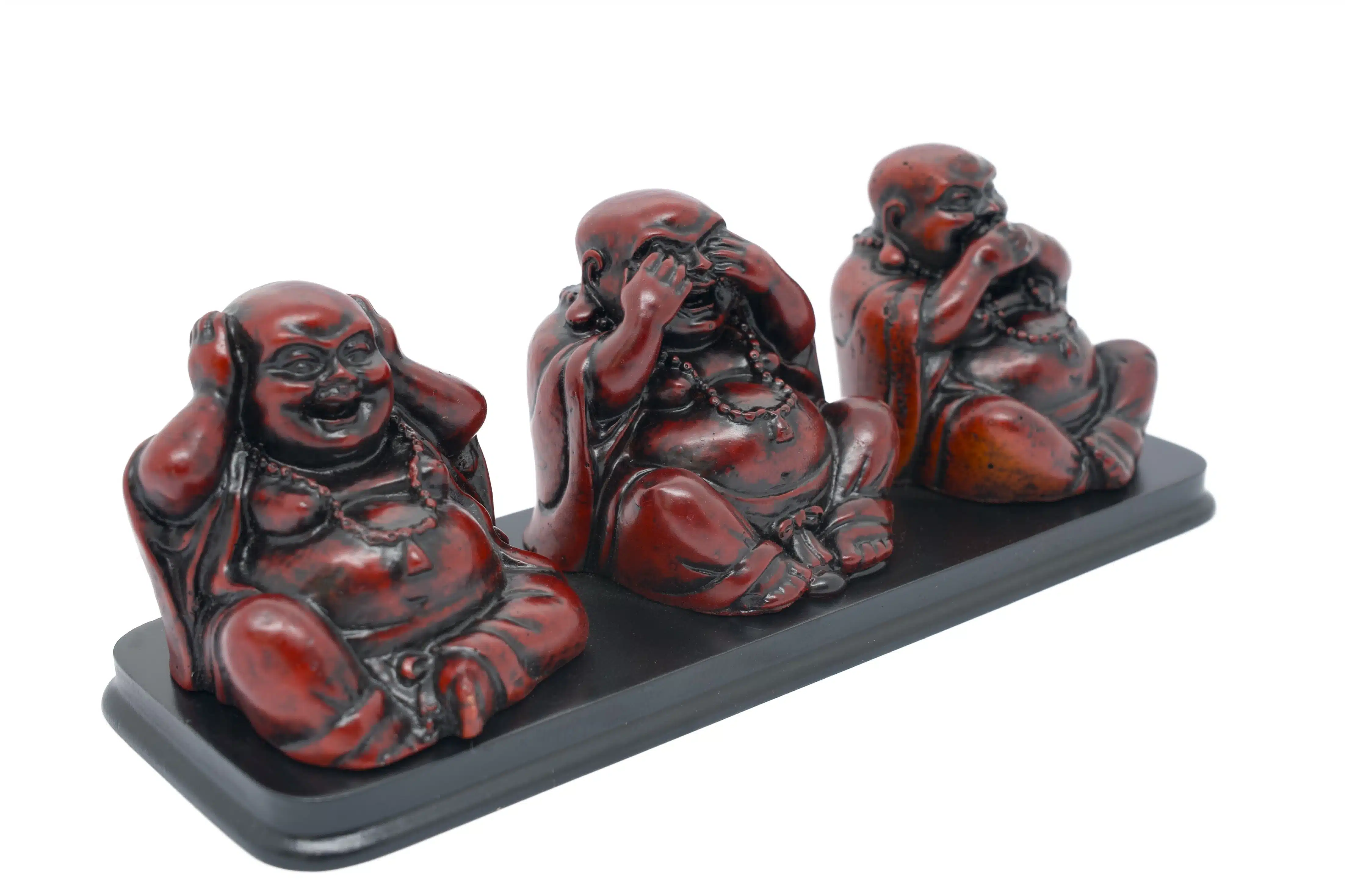 Großhandel – Nichts Böses Hören, Sehen, Sprechen – Lachender Buddha Trio auf Basis | Rot Polystein