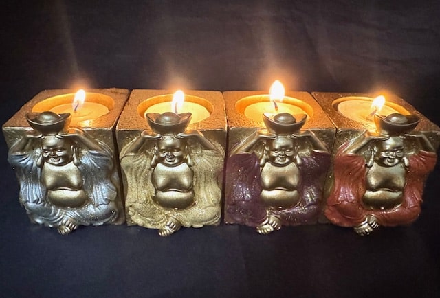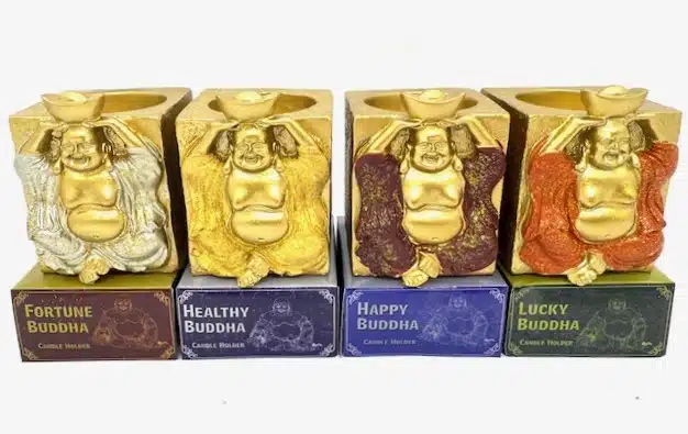 Großhandel – Lachender Buddha Teelichthalter – Set (4 Stück)