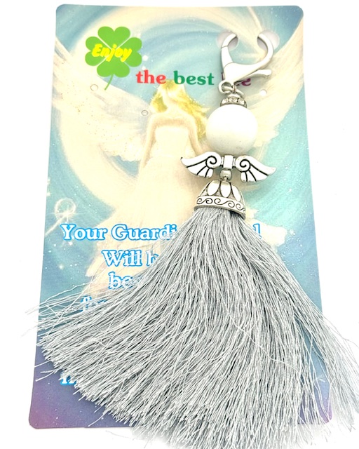 Großhandel – Grau Engel Quasten-Schlüsselanhänger – Schutzengel Taschenanhänger