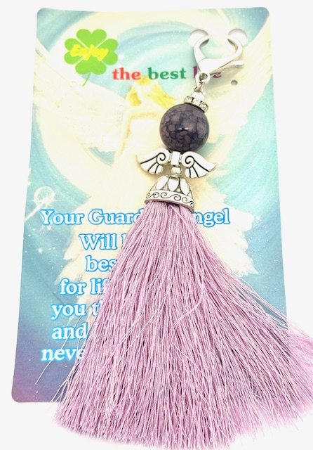 Großhandel – Lila Engel Quasten-Schlüsselanhänger – Schutzengel Taschenanhänger