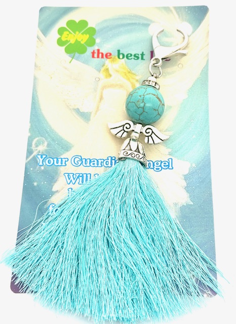 Großhandel – Türkiser Engel Quasten-Schlüsselanhänger – Schutzengel Taschenanhänger