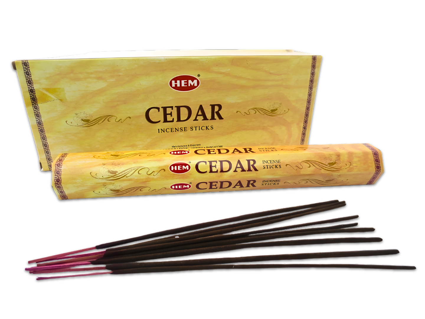 HEM Cedar Hexa Räucherstäbchen verströmen einen trockenen, holzigen Duft mit feinen harzigen Noten, inspiriert von Zedernholz. Sie werden häufig verwendet, um eine ruhige, geerdete Atmosphäre in Wohnräumen, Studios sowie Meditations- und Behandlungsbereichen zu schaffen und harmonieren gut mit erdigen oder krautigen Düften.