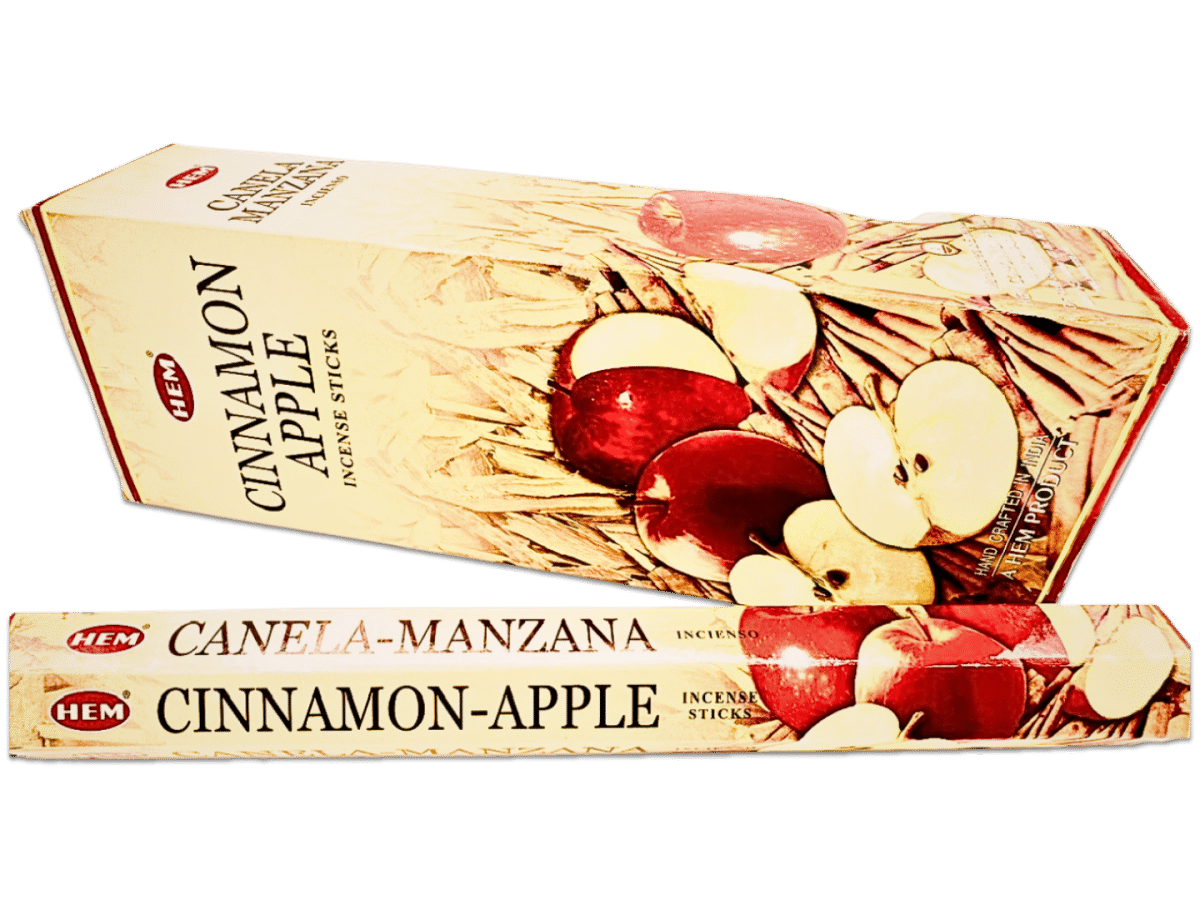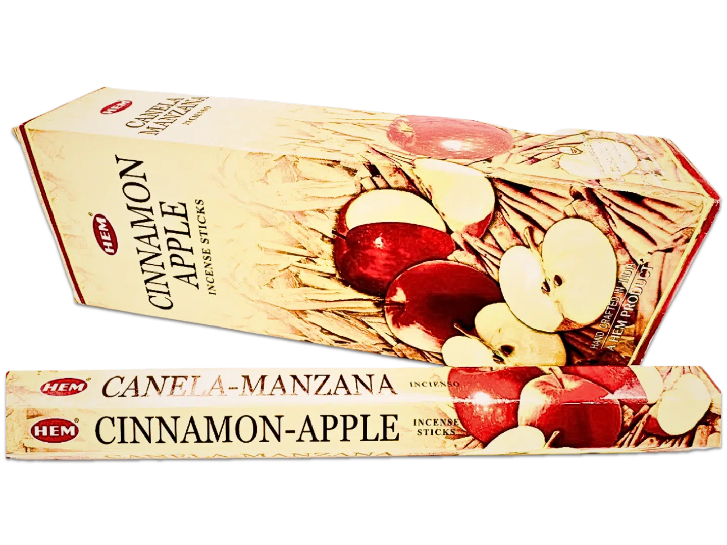 HEM Cinnamon Apple Hexa Räucherstäbchen verströmen einen warmen, würzig-fruchtigen Duft, der süße, gebackene Apfelnoten mit wohliger Zimtwürze verbindet. Der Duft erinnert an eine gemütliche Küchenatmosphäre und wird häufig genutzt, um vor allem in den Herbst- und Wintermonaten eine einladende, heimelige Stimmung in Geschäften, Salons, Cafés, Yogastudios und Wohnräumen zu schaffen.