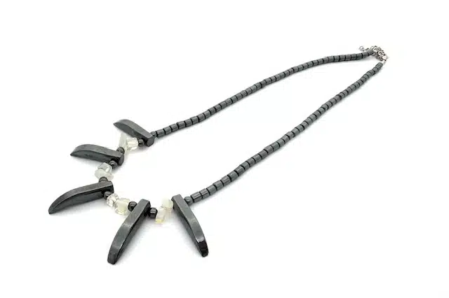Verleihen Sie Ihrem Stil einen Hauch moderner Raffinesse mit dieser wunderschönen Latz-Stil Hämatitkette. Gefertigt aus poliertem, natürlichem Hämatit, ist jede glatte, metallisch-graue Perle präzise geformt und verbunden, um ein markantes und zugleich elegantes Design zu schaffen. Der dezente Glanz und die weiche Textur machen diese Kette zu einem vielseitigen Accessoire für legere und formelle Anlässe. Hämatit ist bekannt für seine erdenden und ausgleichenden Eigenschaften – es stärkt nicht nur Ihren Stil, sondern verleiht auch Ruhe und innere Stärke. Verstellbar für eine perfekte Passform, ideal für Damen und Herren, die modernen schmuck lieben.
