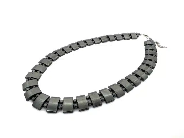 Verleihen Sie Ihrem Stil einen Hauch moderner Raffinesse mit dieser wunderschönen rechteckige Hämatitkette. Gefertigt aus poliertem, natürlichem Hämatit, ist jede glatte, metallisch-graue Perle präzise geformt und verbunden, um ein markantes und zugleich elegantes Design zu schaffen. Der dezente Glanz und die weiche Textur machen diese Kette zu einem vielseitigen Accessoire für legere und formelle Anlässe. Hämatit ist bekannt für seine erdenden und ausgleichenden Eigenschaften – es stärkt nicht nur Ihren Stil, sondern verleiht auch Ruhe und innere Stärke. Verstellbar für eine perfekte Passform, ideal für Damen und Herren, die modernen schmuck lieben.