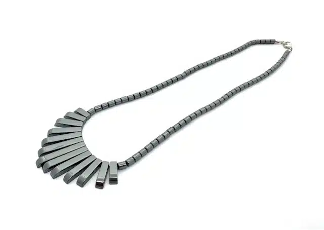 Verleihen Sie Ihrem Stil einen Hauch moderner Raffinesse mit dieser wunderschönen abstufter fransenperlen Hämatitkette. Gefertigt aus poliertem, natürlichem Hämatit, ist jede glatte, metallisch-graue Perle präzise geformt und verbunden, um ein markantes und zugleich elegantes Design zu schaffen. Der dezente Glanz und die weiche Textur machen diese Kette zu einem vielseitigen Accessoire für legere und formelle Anlässe. Hämatit ist bekannt für seine erdenden und ausgleichenden Eigenschaften – es stärkt nicht nur Ihren Stil, sondern verleiht auch Ruhe und innere Stärke. Verstellbar für eine perfekte Passform, ideal für Damen und Herren, die modernen schmuck lieben.