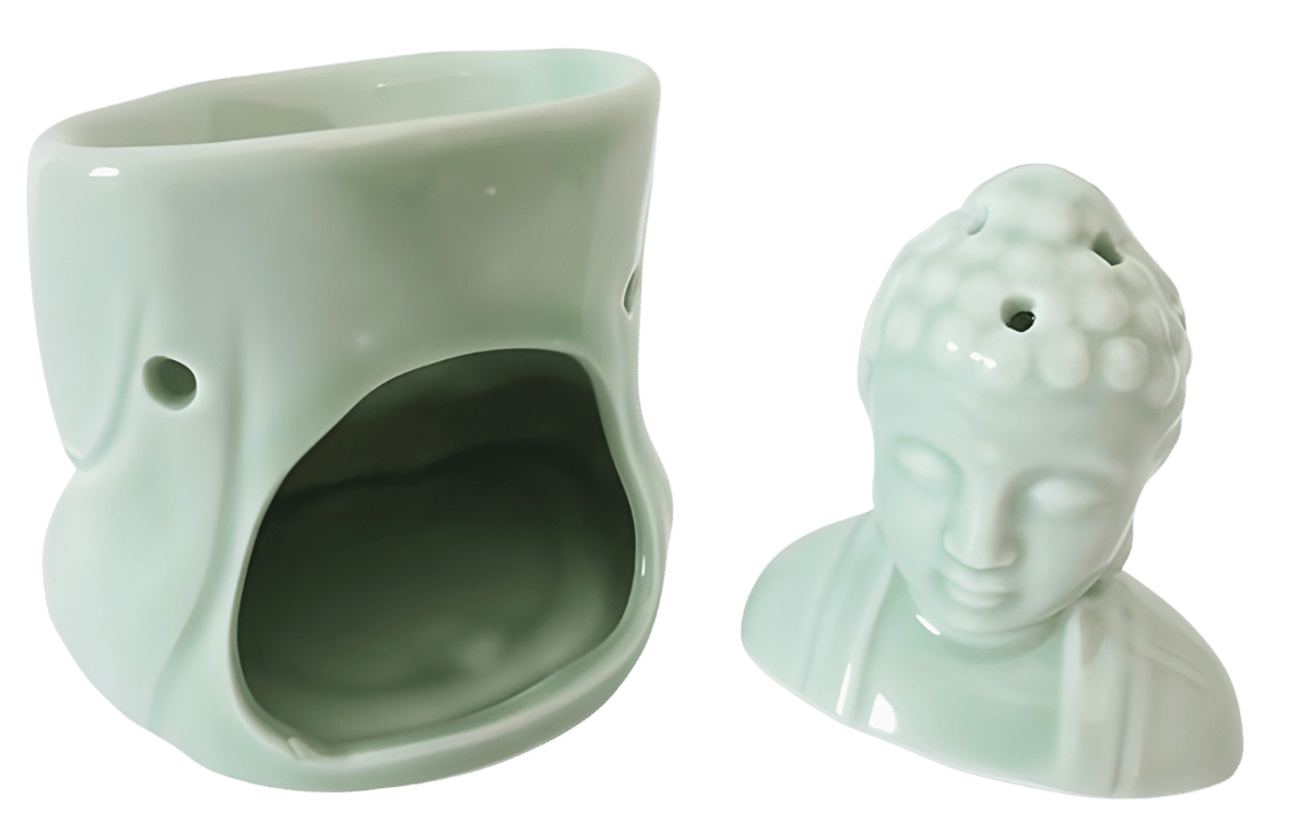 Keramik-Duftölbrenner Buddha-Kopf Hellblau (Luxus)s