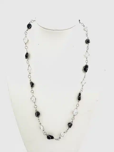 Diese wunderschöne, gemischte Edelstein-Drahtkette ist modisch perfekt für jeden Anlass. Jedes Armband besteht aus polierten, natürlichen Halbedelsteinen – wie Achat, Onyx, Jade, Karneol und Quarz – sorgfältig von Hand mit langlebigem Metalldraht gewickelt. Die einzigartige Mischung aus Farben und Texturen verleiht jedem Design eine elegante, natürliche Note. Wird in Großhandelsmengen verkauft und bietet hervorragendes Preis-Leistungs-Verhältnis bei größeren Bestellungen. Füge natürliche Schönheit und lebendige Energie zu deinen handgefertigten Kreationen hinzu mit dieser hochwertigen Edelstein-Drahtkette.